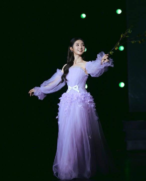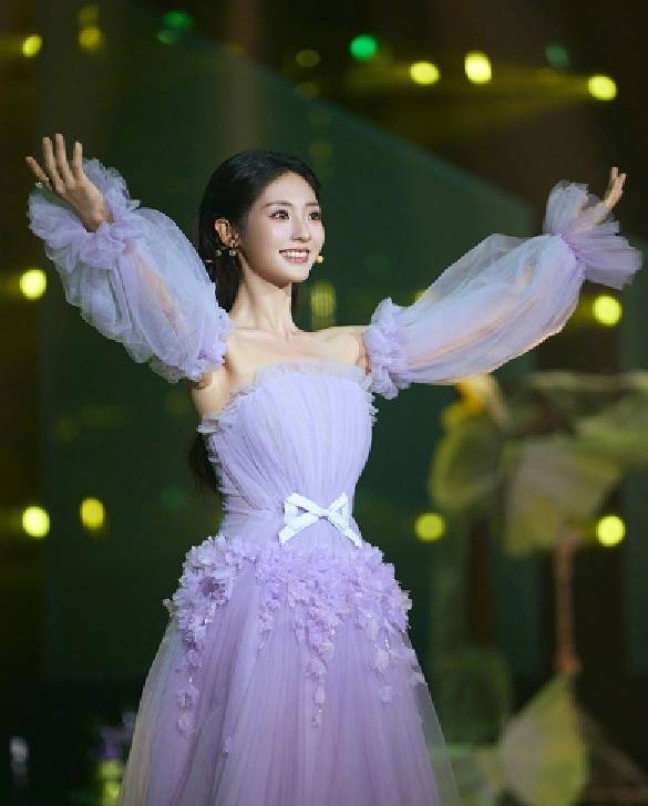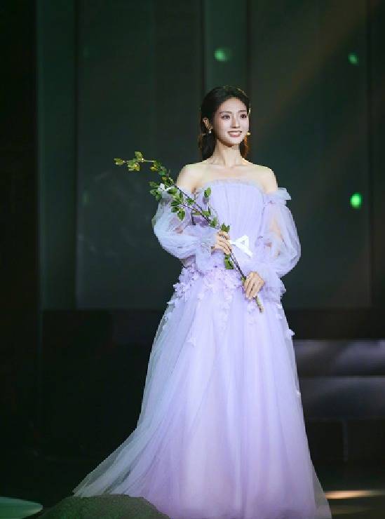 邢菲紫色礼服妆造超浪漫,这穿搭太可了!